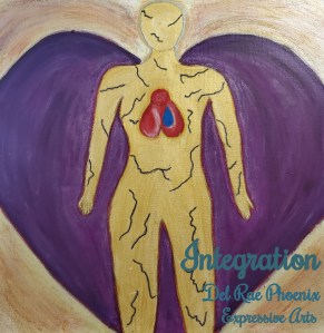 Expansion series on a 20-year-old painting, working on Trauma-related nightmares and post-traumatic growth. Mixed media collage with Acrylic, original poetry and feathers.